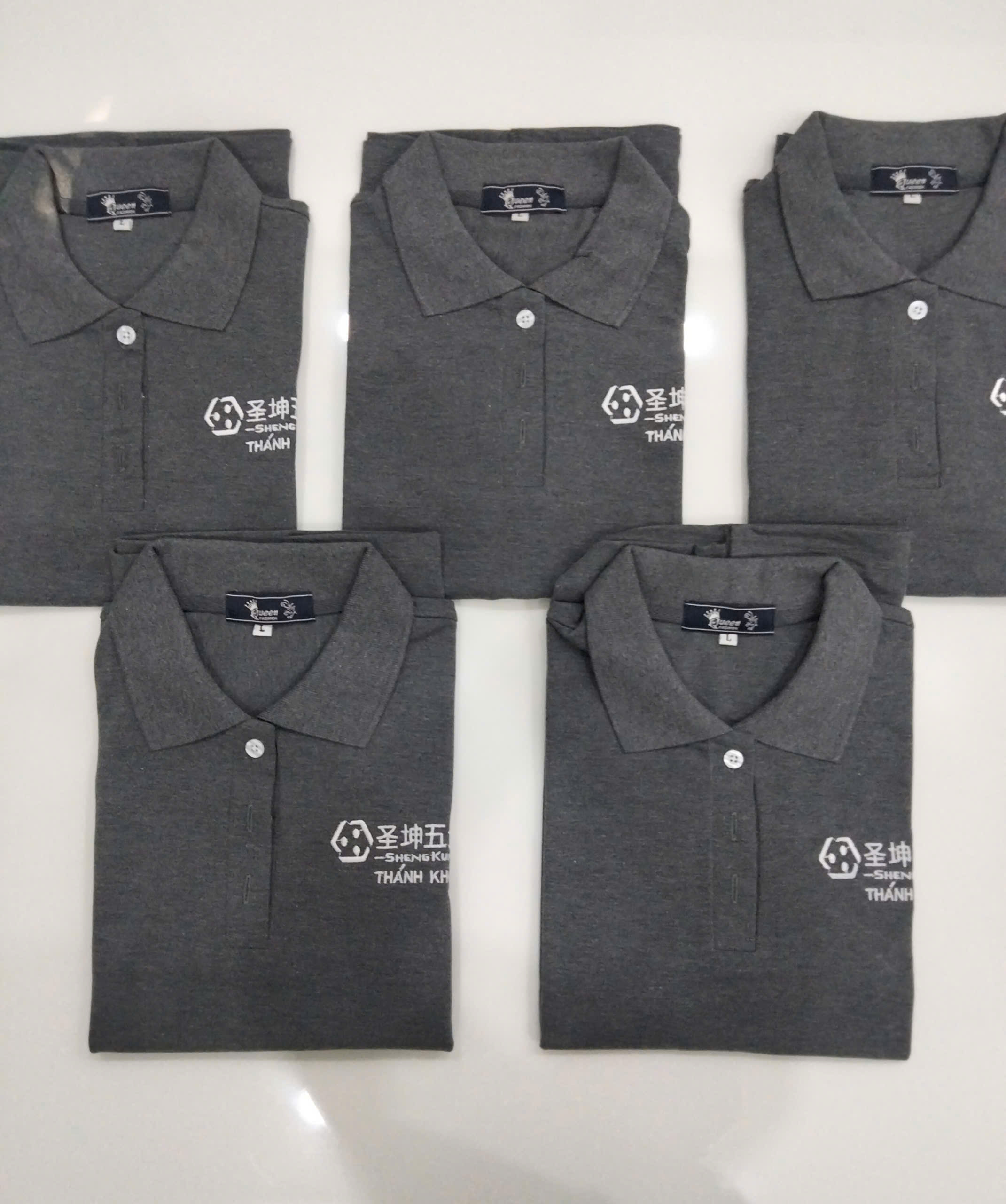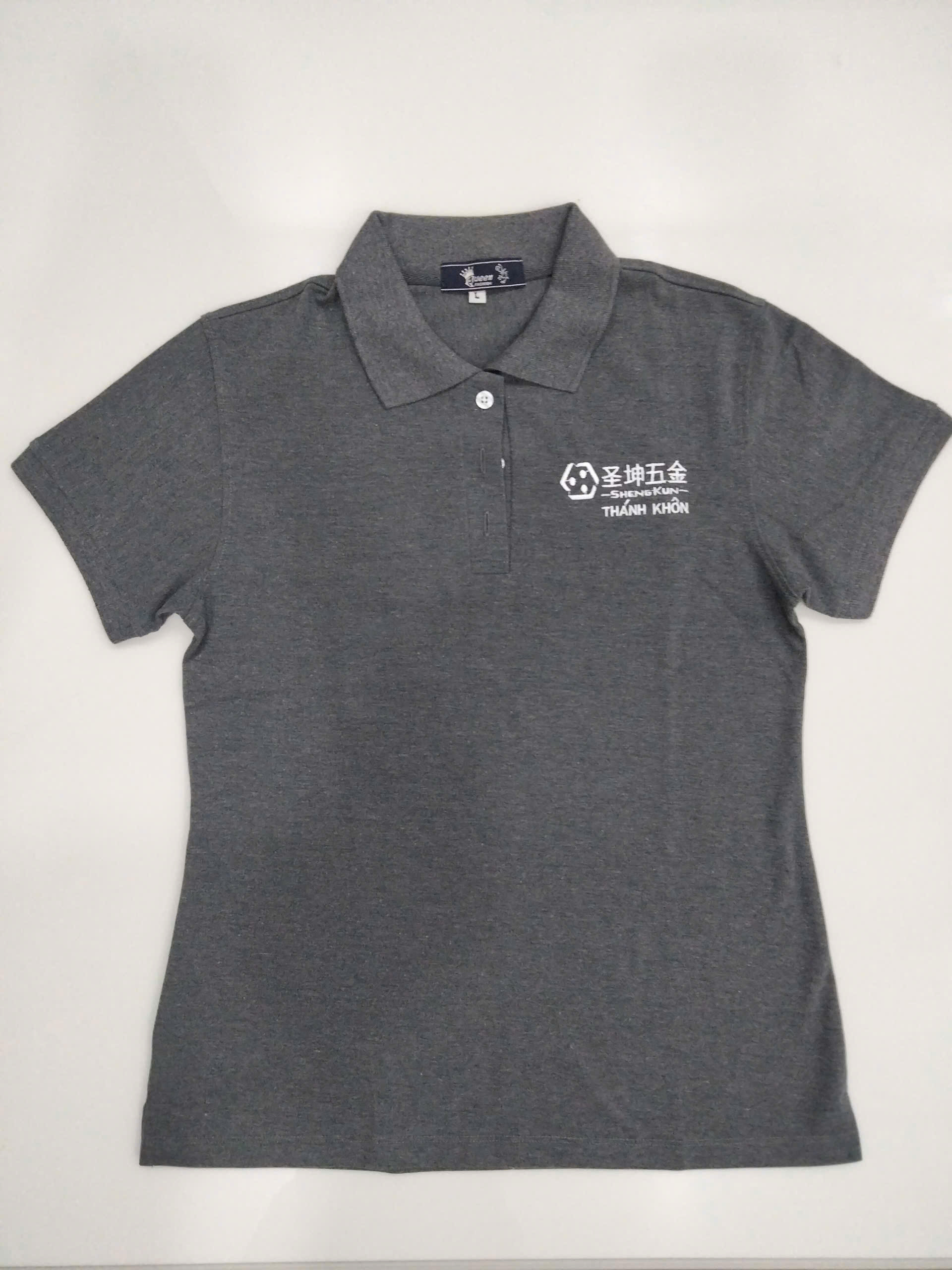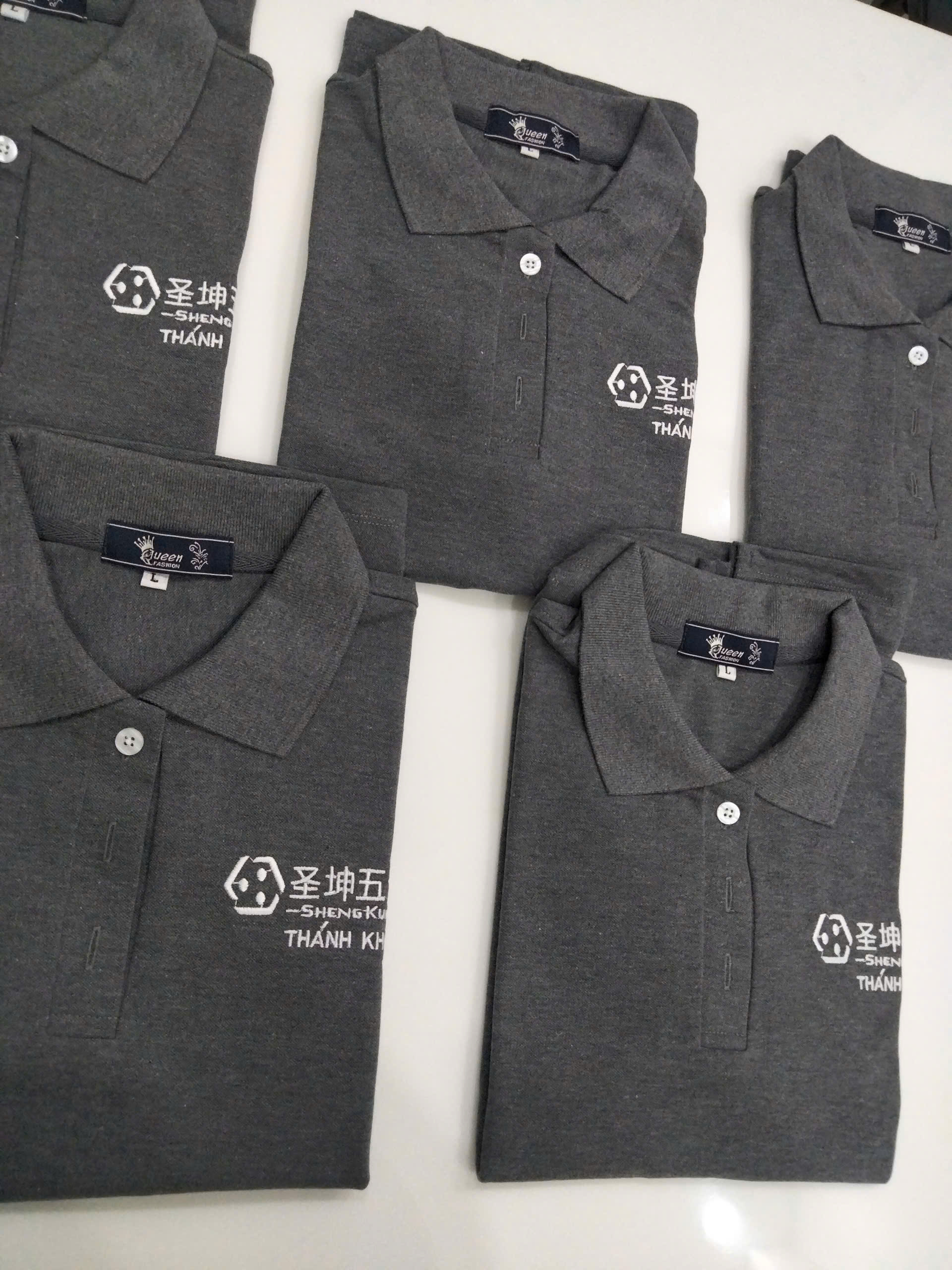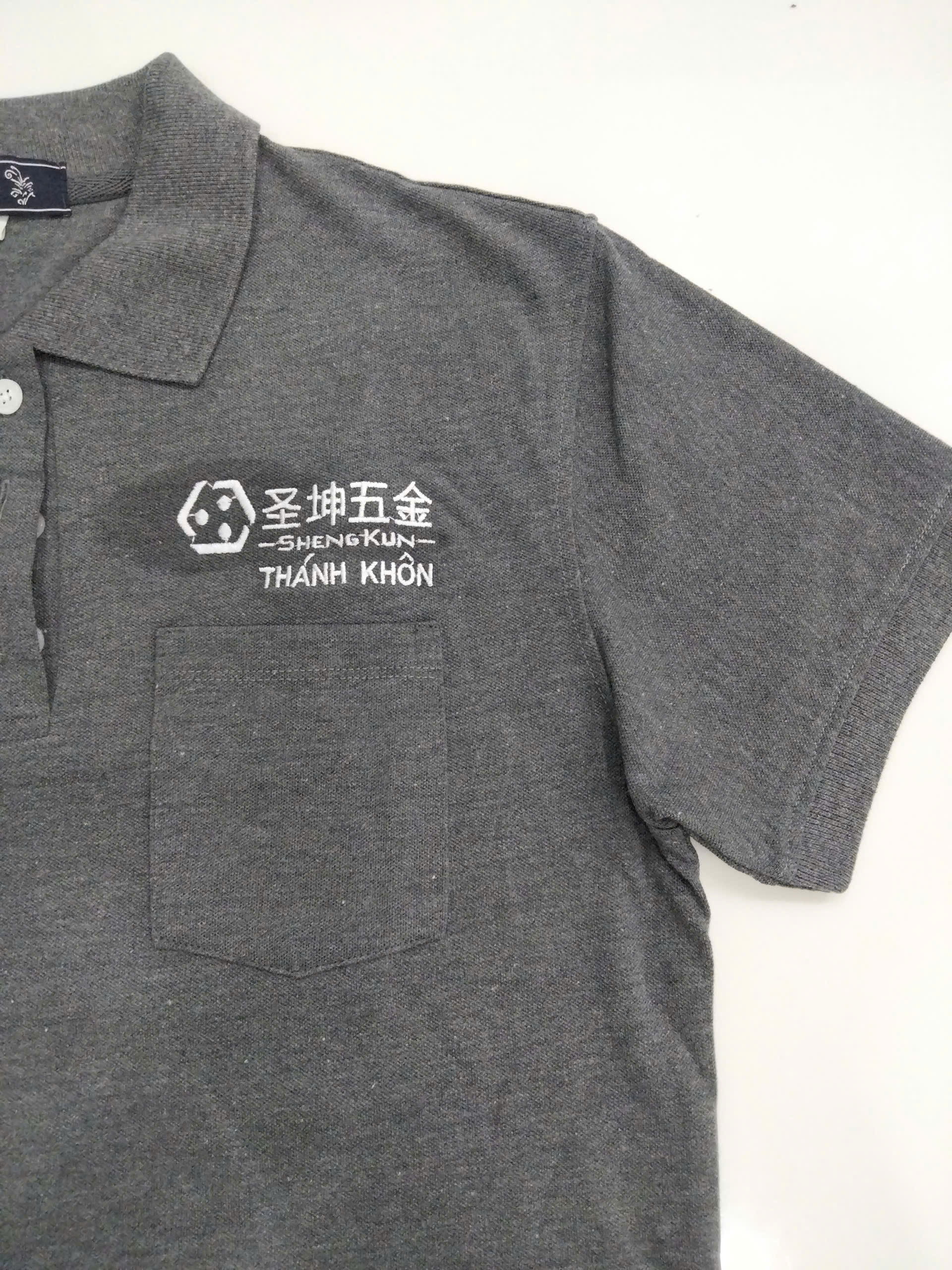 Áo thun cá sấu 65/35 màu xám đậm - Thêu LOGO 1 vị trí ( trước ngực )